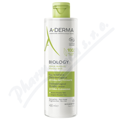 A-DERMA BIOLOGY Dermatologická micelární voda jemně čistí pleť, odstraňuje make-up a nečistoty pleti. Nevysušuje pleť. Bezoplachová péče pro křehkou pleť. Bez parfemace. 100 % složek přírodního původu.