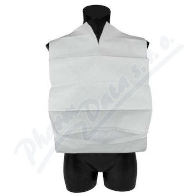 Jednorázové bryndáky, vyrobené z plastové fólie a buničiny. Slouží na ochranu oděvu před znečistěním.
