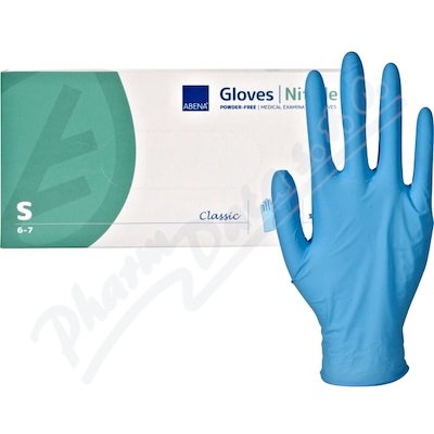 Vyšetřovací nitrilové rukavice Abena Classic, nepudrované. Dostupné ve velikostech S, M, L, XL - nesterilní. Lze je použít pro různé úkony, jako je úklid, ošetřování, manipulace s potravinami, laboratorní práce, manipulace s léky, apod.