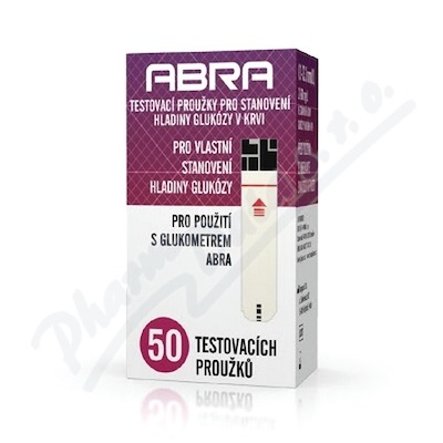 ABRA® testovací proužky jsou diagnostické testovací proužky na stanovení krevního cukru z periferní krve. Balení obsahuje 50 ks testovacích proužků. Proužky pro testování glykémie jsou určeny k měření cukru z plné kapilární krve pomocí glukometru ABRA®.