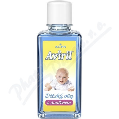 AVIRIL dětský olej s azulenem je vhodný k čištění jemné pokožky kojenců. Vytváří na dětské pleti film chránící před zarudnutím a proleženinami.