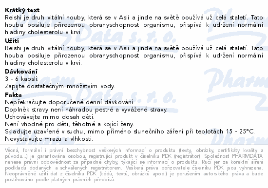 Reishi je druh vitální houby, která se v Asii a jinde na světě používá už celá staletí. Tato houba posiluje přirozenou obranyschopnost organismu, přispívá k udržení normální hladiny cholesterolu v krvi.