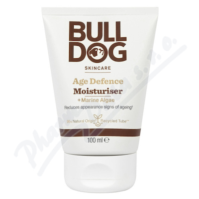Pánský pleťový krém Age Defence Moisturizer od značky Bulldog obsahuje antioxidační komplex bojující proti stárnutí pokožky. Již po 4 týdnech užívání je možné vidět snížení množství jemných linek a vrásek.