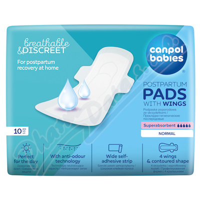 Superabsorpční poporodní vložky Canpol babies s křidélky jsou perfektním řešením pro ženy v popor. obd. k použití doma po opuštění porodnice. Popor. vložky s křidélky jsou tenčí a diskrétnější než běžné poporodní vložky, ale také vysoce savé a prodyšné.