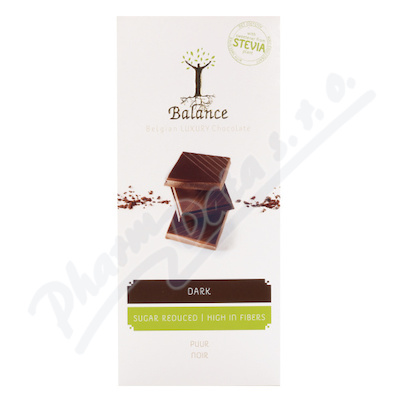 Čokoláda Balance STEVIA hořká bez přidaného cukru 85g je kvalitní belgická tabulková čokoláda. Tato čokoláda je bez přidaného cukru. Obsahuje sladidlo maltitol, při zvýšené konzumaci může mít projímavé účinky.