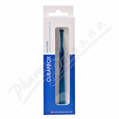 Profesionální držák mezizubních kartáčků, ocelový v barvě modré, který je určen pro bezpečné a praktické čištění mezizubních prostor. Speciálně vhodný pro postranní úsek zubů.