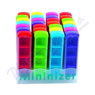 Displej 28 barevných denních zásobníků na léky a potravinové doplňky. Samostatné denní zásobníky jsou uzavíratelné, mají 4 přihrádky na ráno, poledne, večer a noc. Možnost barevného rozlišení pro jednotlivé uživatele.