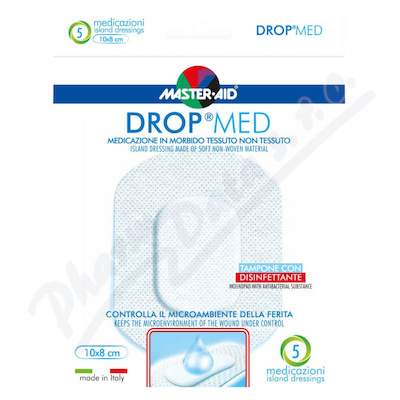 Drop Med Sterilní antiseptické hypoalergenní samolepící krytí na rány z měkké velmi prodyšné netkané textilie vhodné pro pooperační ošetření ran i pro všechny typy běžných ran, např. řezné rány, oděrky a popáleniny I. stupně.