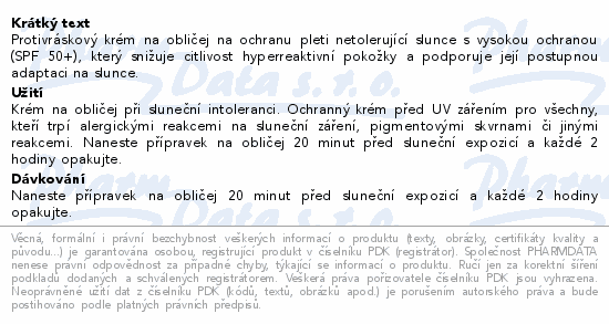 Protivráskový krém na obličej na ochranu pleti netolerující slunce s vysokou ochranou (SPF 50+), který snižuje citlivost hyperreaktivní pokožky a podporuje její postupnou adaptaci na slunce.
