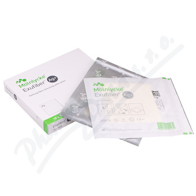 Exufiber Ag+ je měkké sterilní netkané krytí vyrobené z vysoce absorpčních, gelotvorných vláken z polyvinylalkoholu (PVA), která jsou z obou stran pokryta síranem stříbrným. Účinně absorbuje a zadržuje exsudát, čímž uchovává vlhké prostředí rány.
