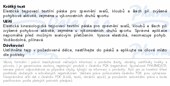 Elastická tejpovací textilní páska pro zpevnění svalů, kloubů a šlach při zvýšené pohybové aktivitě, zejména u výkonostních druhů sportu.