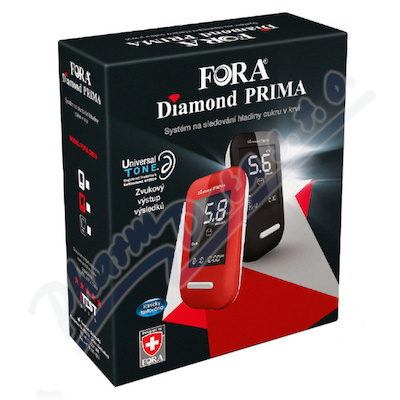 Absolutně přesný Glukometr Diamond PRIMA s vekým čitelným podsvíceným displejem, osvětleným portem pro vsunutí proužku a jednoduchou obsluhou nejlepší volbou pro střední a starší generaci.