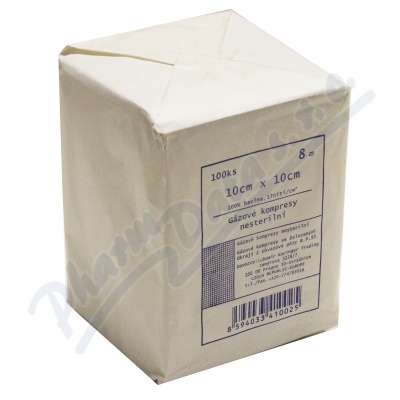 Kompresy z gázy, sterilní slouží k čistění, vysoušení a ošetření ran, popř. zastavení krvácení. Jsou vyrobeny z měkké, vysoce savé gázy ze 100% bavlny. Jsou prodyšné a jemné. mají hustotu 17nití na cm2. Kompresy jsou 8 vrstvé se založenými okraji.