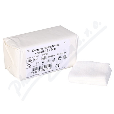 Kompresy z gázy jsou vyrobeny z bělených bavlněných vláken v počtu 17 vláken na centimetr čtvereční. Jsou vyrobeny z měkké, vysoce savé gázy ze 100% bavlny.