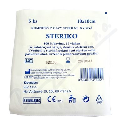 Gáza kompr.ster.Steriko 10x10cm/5ks 8 vrstev