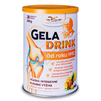 Geladrink je kloubní výživa s vysokou dávkou kolagenních peptidů - stavebního materiálu kloubní chrupavky a plnou doporučenou denní dávkou vitamínu C, který podporuje zdraví chrupavek a pomáhá chránit buňky před oxidativním stresem.