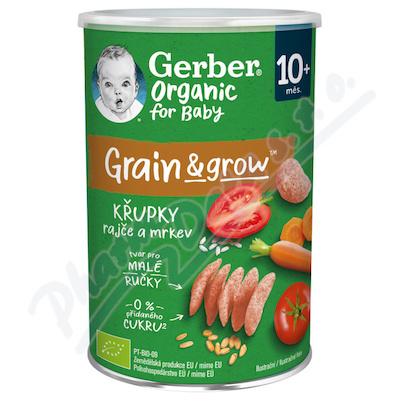GERBER Organic křupky s rajčaty a mrkví jsou křehké a nadýchané křupky pro malé děti vhodné od ukončeného 10. měsíce.