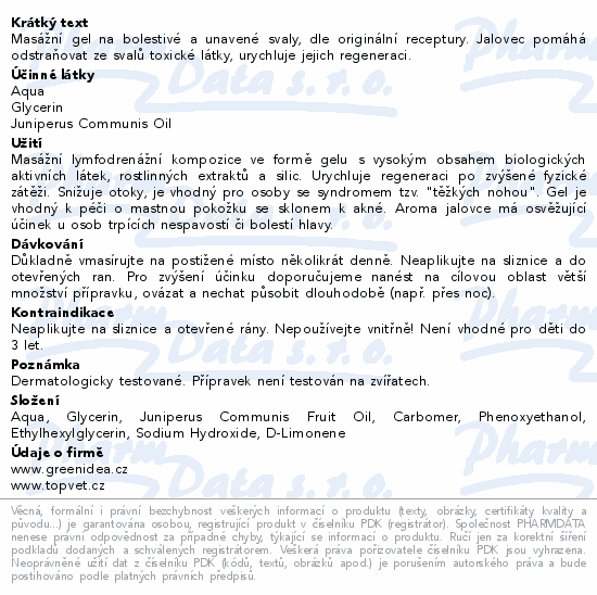 Masážní gel na bolestivé a unavené svaly, dle originální receptury. Jalovec pomáhá odstraňovat ze svalů toxické látky, urychluje jejich regeneraci.