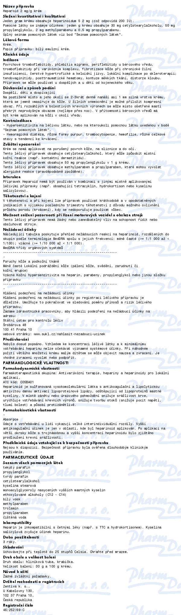 Přípravek Heparoid krém zmírňuje bolest a zánět, navíc podporuje hojení zánětů žil včetně bércových vředů a změkčuje ztuhlou kůži při žilní nedostatečnosti. Čtěte pozorně příbalový leták.