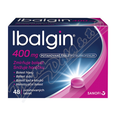 Přípravek Ibalgin 400 obsahuje léčivou látku ibuprofen, která patří do skupiny tzv. nesteroidních protizánětlivých léčiv. Zabraňuje tvorbě tkáňových působků, které jsou zodpovědné za vznik bolesti a zánětu a uvolňují se v místě poškození tkáně. Čtěte pozorně příbalový leták.