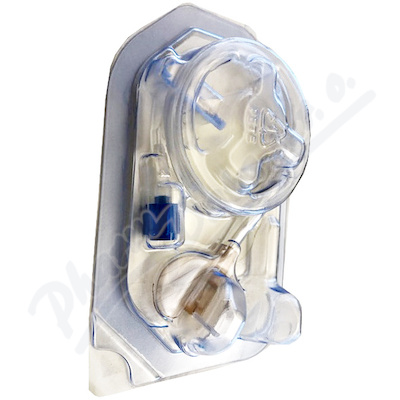 Subkutánní infuzní set s nízkým průtokovým odporem 24G, ohnutou jehlou, tělem s křidélky, hadičkou, průhledným krytím s páskou a plnícím objemem.