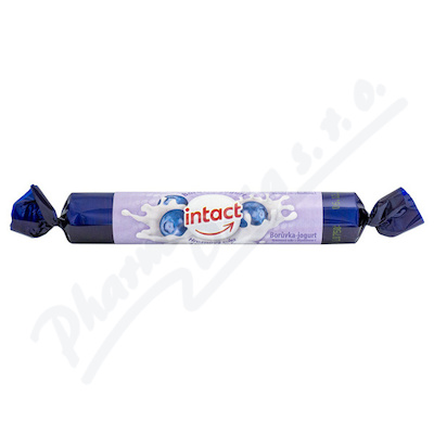 Intact pastilky z hroznového cukru s příchutí borůvka-jogurt s vitaminem C. Doplněk stravy, vitamínový přípravek.