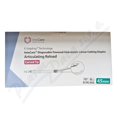 Jednorázový artikulační zásobník pro elektrický endoskopický lineární katr IntoCareTM. Na každé straně od středové linie zásobníku jsou tři řady sponek.