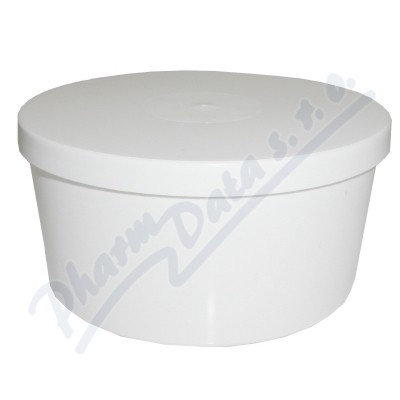 Plastový bílý kelímek s víčkem. Pomocný materiál určený pro lékárny - na masti, soli, pudry, prášky apod.