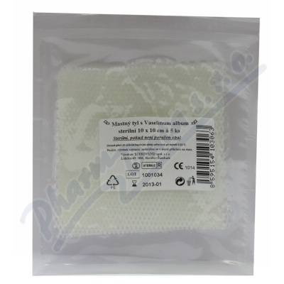 Sterilní mastný tyl je vyroben z obvazové textilie S20 - vysoce porézní hydrofobní obvaz z chemických vláken, určený pro impregnaci léčiv v tekutém nebo masťovém základu.