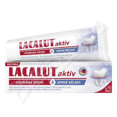 Lacalut aktiv ochrana dásní a jemné bělení je medicinální zubní pasta pro zdravé dásně a přirozené zuby. Snižuje krvácivost dásní a pomáhá předcházet zánětu.
