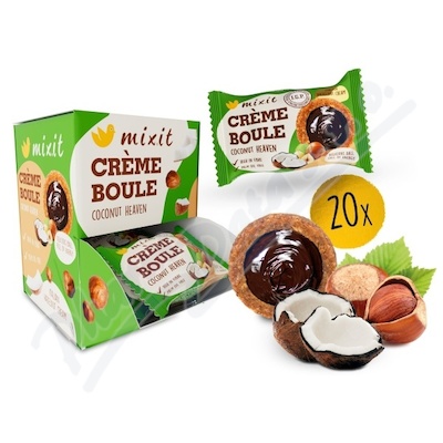 Créme boule - Coconut heaven - Datlový koláček s kokosem plněný lískooříškovým krémem s fondánem - harmonie datlí a jemně nastrouhaného kokosu bez palmového oleje a bez zbytečných umělých přísad a chemie.