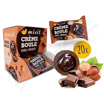 Créme boule - Double chocolate - Datlový koláček s kakaem plněný lískooříškovým krémem s fondánem - harmonie datlí a kvalitního kakaa bez palmového oleje a bez zbytečných umělých přísad a chemie.