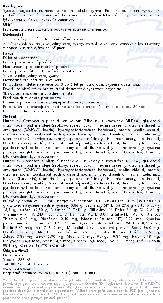 Vysokoenergetická nutričně kompletní tekutá výživa. Pro řízenou dietní výživu při podvýživě související s nemocí. Potravina pro zvláštní lékařské účely. Balení obsahuje tyto příchutě: 4x vanilková, 4x banánová.