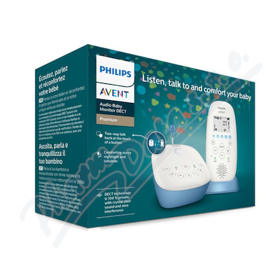 Noční světlo s hvězdami uspí vaše dítě. Režim Smart ECO zajišťuje efektivní využívaní energie, režim klidné noci pro rodiče. Snímač teploty s nastavitelnými výstrahami, možnost vibračního režimu. Obousměrná komunikace, dosah ve volném prostoru až 330 m.