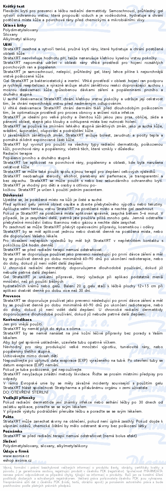 Flexibilní krytí pro prevenci a léčbu radiační dermatitidy. Samoschnoucí, průhledný gel vytvoří ochrannou vrstvu, která propouští vzduch a je voděodolná, hydratuje a chrání postižená místa kůže a povrchové rány před chemickými a mikrobiálními vlivy.