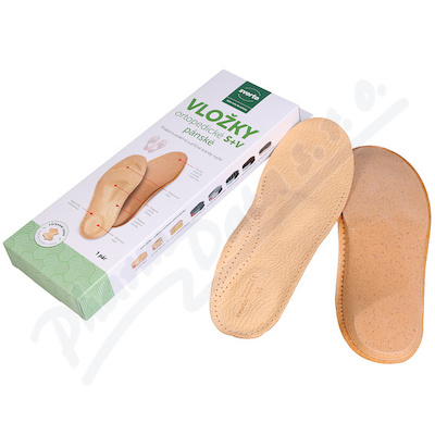Vložka podepírá podélnou a příčnou klenbu nožní. Podprstová řasa v přední části a měkký polštářek v patě zvyšují komfort chůze.