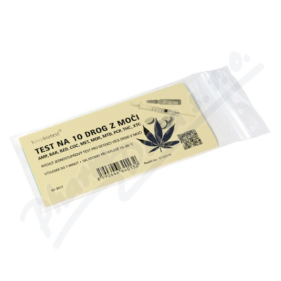 Rychlý jednostupňový kontrolní test pro zjištění AMP, BAR, BZD, COC, MET, MOR, MTD, PCP, THC, XTC v moči. Rozliší koncentraci 20-2000mcg/mL v čase 1 hod -5 dnů. Každá droga má v testovací kazetě svůj proužek, který bude při pozitivním nálezu bez reakce.