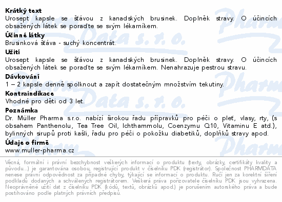 Urosept kapsle se šťávou z kanadských brusinek. Doplněk stravy. O účincích obsažených látek se poraďte se svým lékarníkem.
