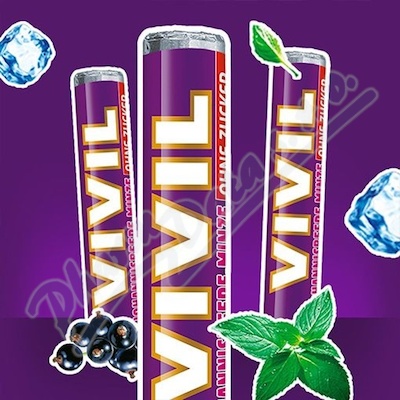 Vivil bonbony s příchutí černého rybízu, s výtažkem z brusinek, ostružin, malin .., bez cukru s náhradními sladidly.